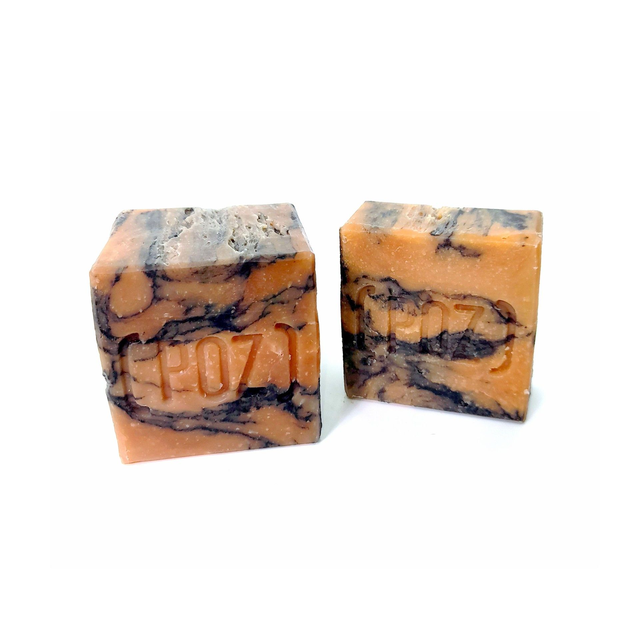 Ingrédients INCI : Olea europaea fruit oil*, Coco nucifera oil*, Aqua, Theobroma cacao seed butter*, Sodium hydroxyde, Sodium chloride°, lac*°, helianthus annuus oil*°, fragrance, koalin, charcoal powder, benzyl cinnamate, coumarin